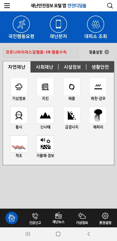 지금시기에 딱 맞는 재난안전정보 포털 앱인것 같습니다.