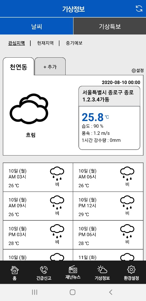 ◎재난안전정보 포털앱 안전디딤돌은 기상정보 날씨 관심지역,현재지역,중기예보 기상특보까지 볼수 있습니다.