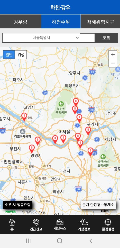 ◎재난안전정보 포털앱 안전디딤돌은 비가 엄청올떄 각각의 지역별 하천수위도 계속 살펴보는게 중요합니다.